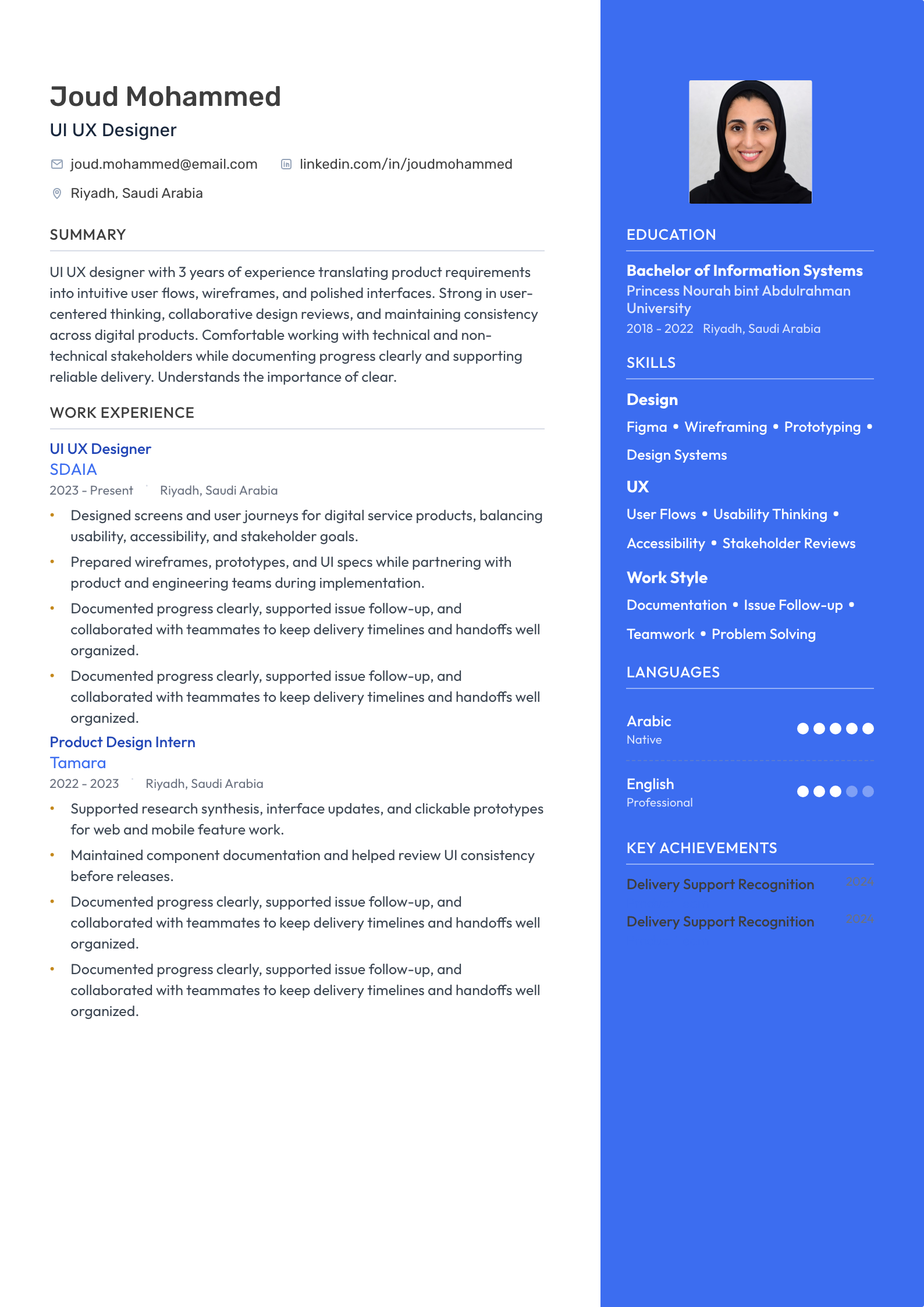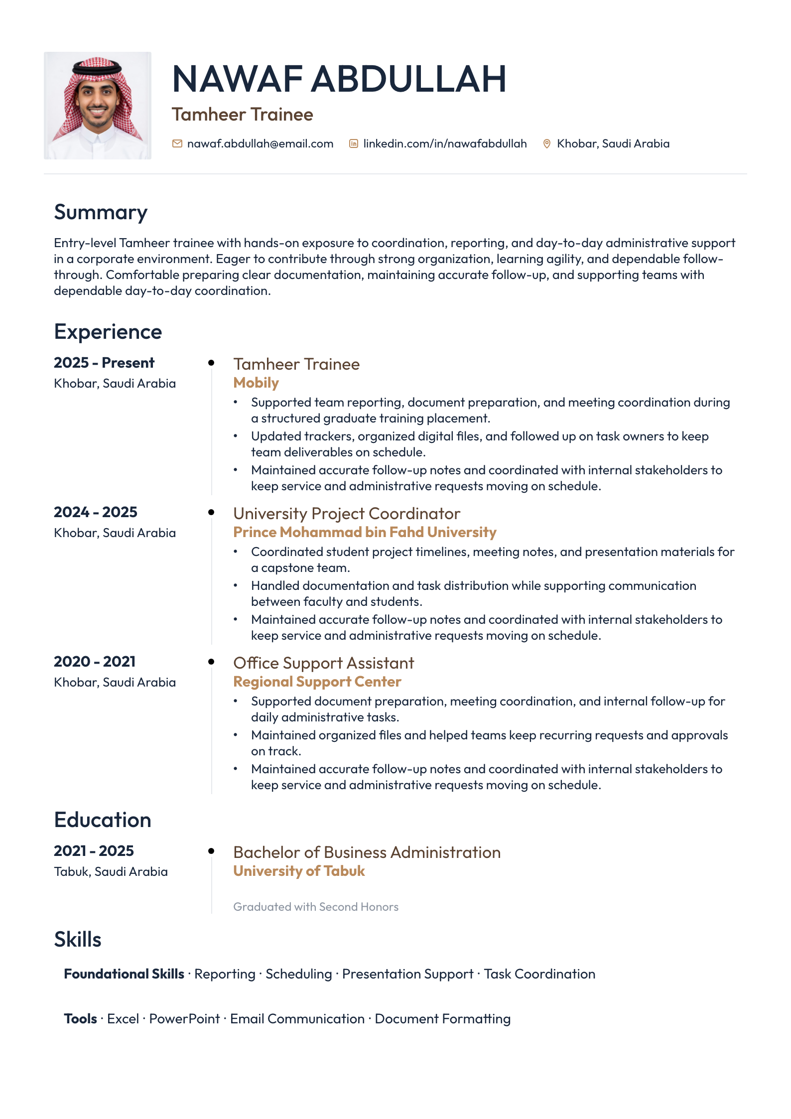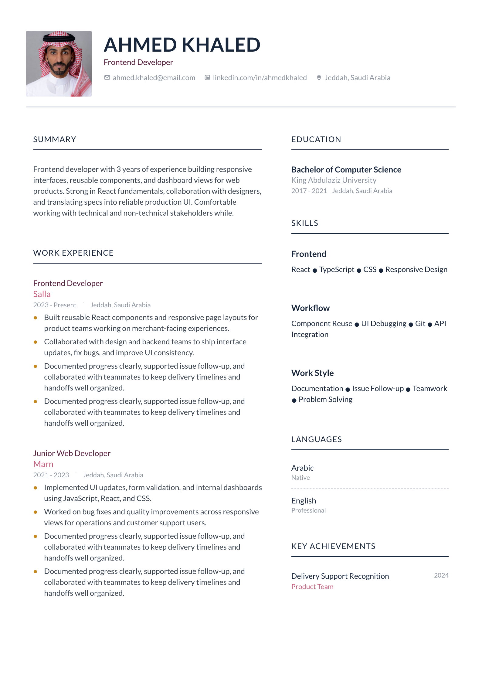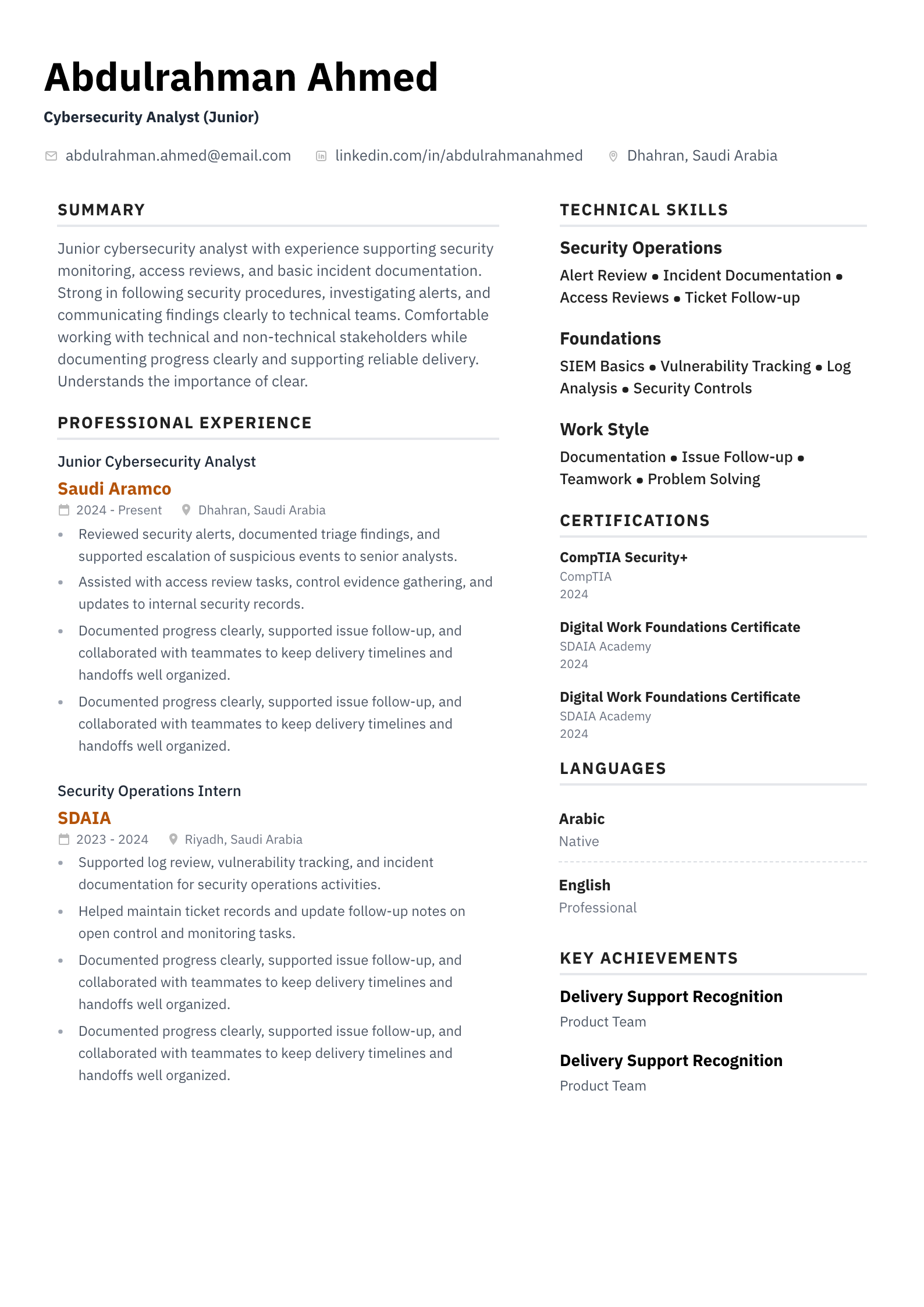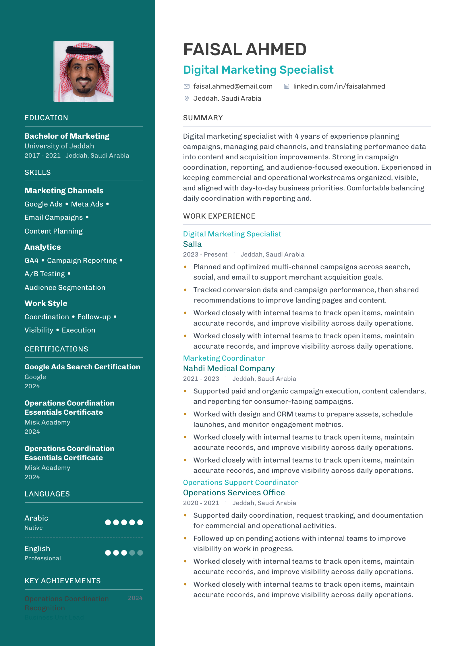 سيرة ذاتية باللغة الإنجليزية مهيأة للسوق السعودي.